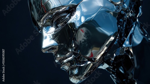 Fototapeta premium Metallic robot head, detailed close-up