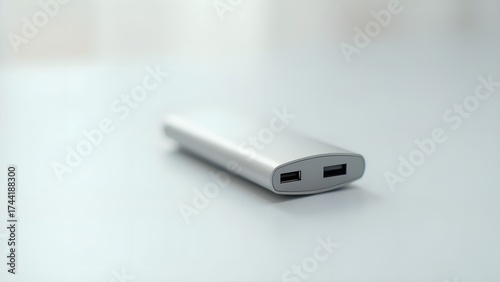 © snupdo, Fototapeta premium Metallic Slim Compact Power Bank with USB Ports on White Background