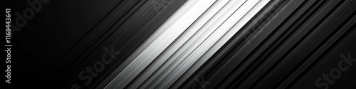 © Robert Anto, Obraz premium Metallic striped texture with diagonal black and silver tones creating a sleek and reflective design.