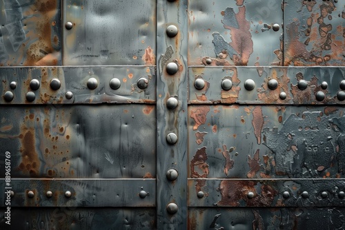 Fototapeta premium Metallic Texture Pattern, Steel Rough Weathered Wallpaper, Metal Material Background Concept, Antique Rugged Tough Wall Backdrop Design