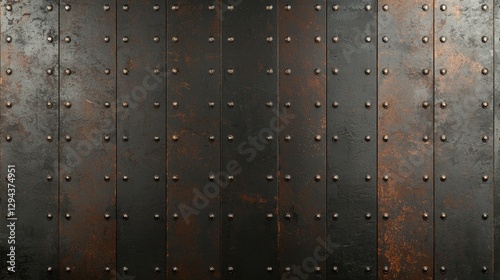 Naklejka premium Metallic Textured Wall with Rivets and Rusty Finish in Dark Tones