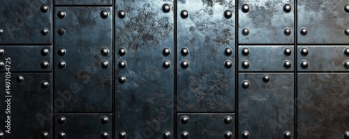 Fototapeta premium Metallic wall with rivets and a rugged texture