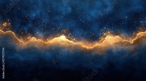 © Wararat, Fototapeta premium Metallic wallpaper with gradient gold accents shimmering against a deep navy blue backdrop