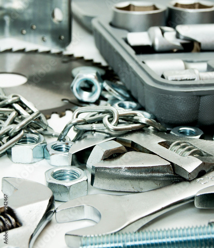 © Artem Shadrin, Fototapeta premium Metalwork. Spanner, box and others tools.