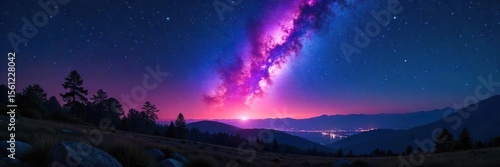 © Patama, Fototapeta premium Meteor Shower Illuminates Night Sky Breathtaking Celestial Event over Dramatic Landscape