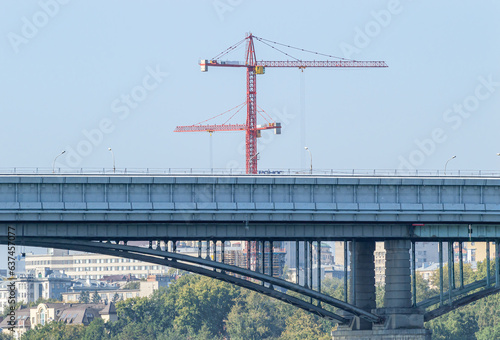 © temp-64GTX, Fototapeta premium Metro Bridge on the Background of the City and Construction Cranes