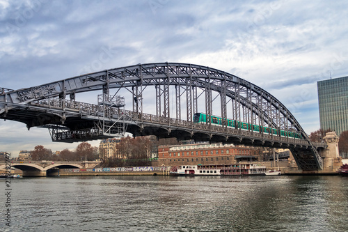 © UlyssePixel, Naklejka premium Metro crossing Austerlitz viaduct in Bercy - Paris, France