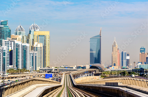 Obraz premium Metro line in Jumeirah district of Dubai, UAE
