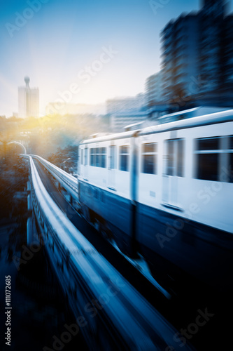 © kalafoto, Naklejka premium metro monorail driving through tunnel