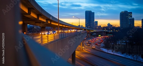 Obraz premium Metropolitan Evening Commute Illuminating Urban Highways at Twilight Hour