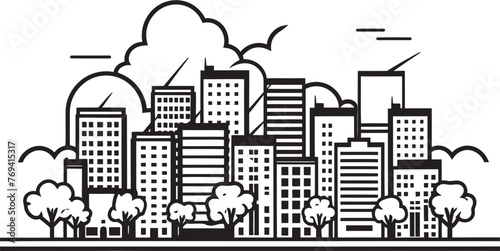 Obraz premium Metropolitan Landscape Silhouette Black Vector Emblem Urban Skyline Sketch Black Logo Design Icon
