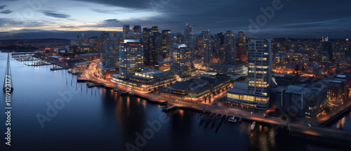 Obraz premium Metropolitan Twilight: Urban Waterfront Panorama