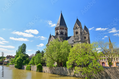 © Nekobus, Fototapeta premium Metz, France. Temple Neuf (New Temple) as seen from the banks of the Moselle River. May 9, 2024.