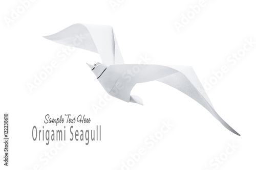 © Mandrixta, Obraz premium Mewa papieru origami na białym tle