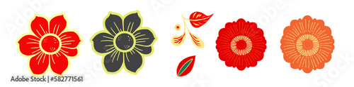 Obraz premium mexican folk flowers, colorful flowers, isolated