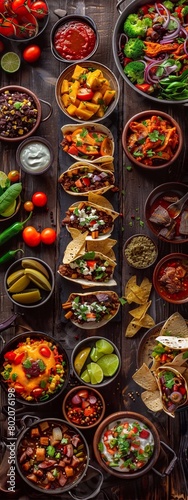 © vita555, Fototapeta premium Mexican food many dishes of mexican cuisine on dark wooden table