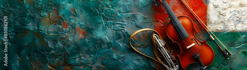 Fototapeta premium Mexican Mariachi Instruments with Flag Elements for Musical Heritage and Independence Day