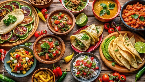 © Jiw, Fototapeta premium Mexican Restaurant Food Platter Group Shot