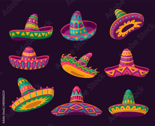 © Aleksandr, Naklejka premium Mexican sombrero hat fiesta party and Cinco de Mayo holiday design set isometric vector