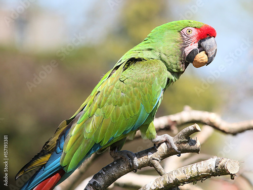 Obraz premium Mexican / South American Military macaw (Ara militaris) eating a nut.