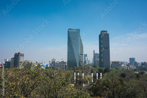Fototapeta premium Mexico City city skyline and cityscape overlooking Chapultepec and Reforma...
