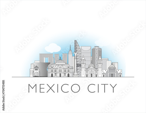 Fototapeta premium Mexico City cityscape line art style vector illustration