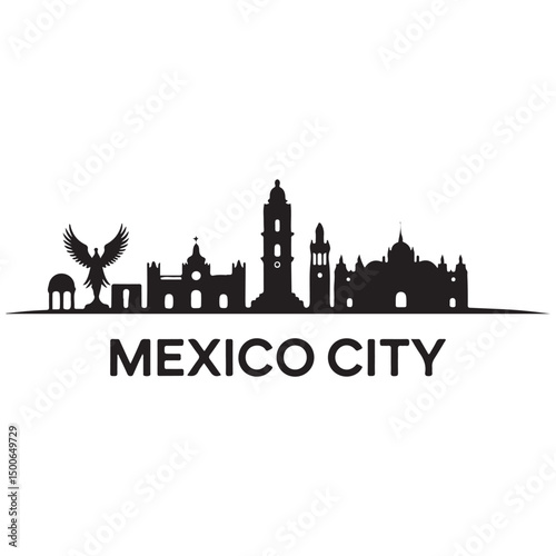 © firoz, Fototapeta premium Mexico city skyline horizontal banner. Black Mexico city. Vector template for your design. Vector black silhouette. with white background