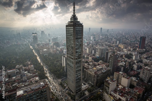 © Second, Fototapeta premium Mexico City skyscraper aerial view, urban sprawl, hazy day, travel