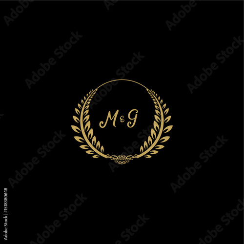 © desi, Naklejka premium MG beautiful feminine and elegant wedding monogram initial logo with circle floral gold