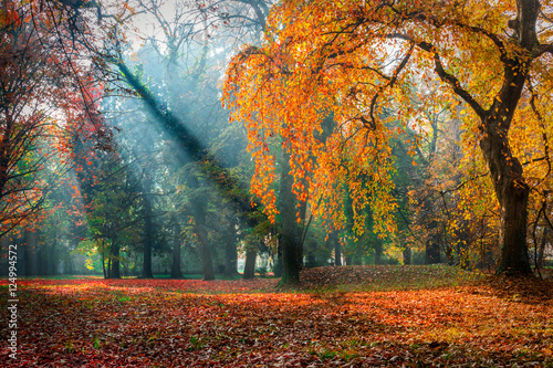 © Luka Balkovic, Fototapeta premium Mglisty jesienny poranek w parku