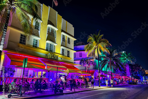 Obraz premium Miami Beach, Florida - July 8, 2024: Vibrant and colorful night scene of...