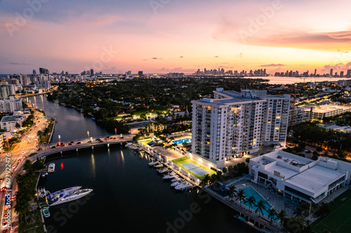 Obraz premium Miami Beach, Florida, USA - Evening aerial of Indian Creek and the distant...