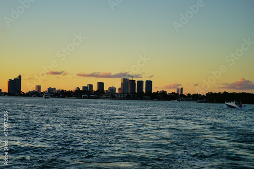 © Feng, Fototapeta premium Miami downtown skyscrapers and beach at sun set