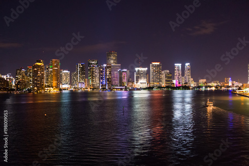 © be free, Obraz premium Miami, Floryda, USA Skyline w Biscayne Bay. świecący widok na centrum Miami
