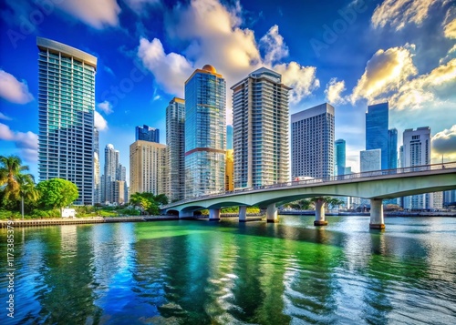 © Adisorn, Fototapeta premium Miami River, Brickell Avenue Bridge, Downtown Skyline, Florida, Urban Landscape