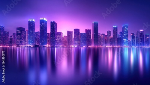 © mauri, Obraz premium Miami Skyline at Twilight: A Vibrant Reflection