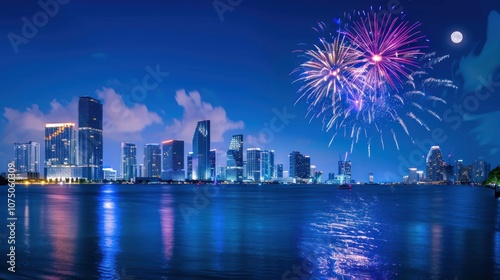 © Berkah, Obraz premium Miami Skyline with Fireworks