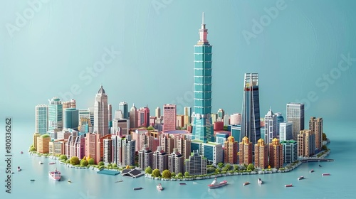 © PrusarooYakk, Obraz premium Miasto izometryczne. Uczyń je kolorowym i żywym. Miasto powinno być otoczone wodą.