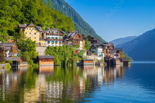 © JFL Photography, Naklejka premium Miasto nad jeziorem Hallstatt w lecie, Austria