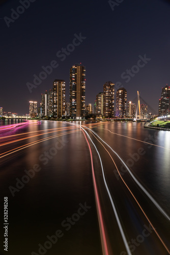 © 志剛 趙, Fototapeta premium Miasto Tokio nocą. Długa ekspozycja. Drapacz chmur