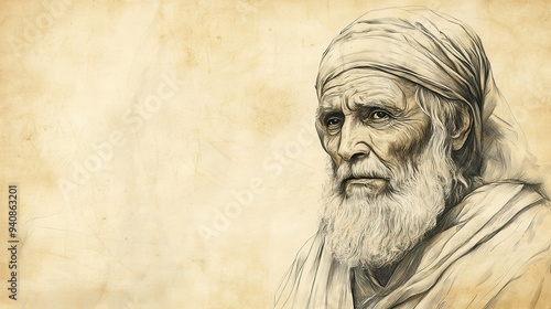 Fototapeta premium Micaiah Prophesies Against Ahab in 1 Kings: Resolute in Prison, Knowing God’s Will Fulfilled, Biblical Illustration on Beige Background for Bible Wall Art
