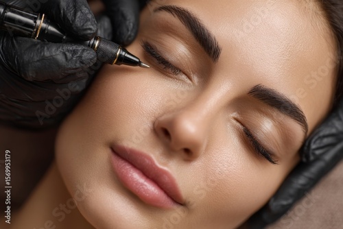 Obraz premium Micro Blanding y estética sobre el rostro de una mujer bella.