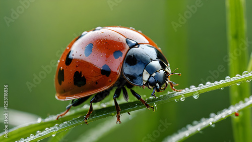 © Creatively, Fototapeta premium Micro photography of on a Blade of Grass: Nature's Tiny Marvel. Generative AI.