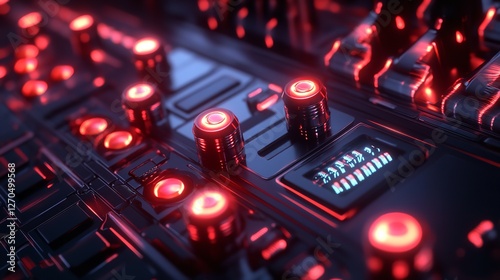 © Waqas, Obraz premium Microchip Circuit Board with Illuminated Components: A Glimpse into Modern Technology