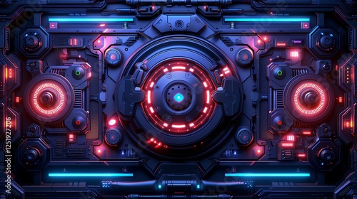 Fototapeta premium Microchip close-up with beautiful light. Puce électronique, processeur en...