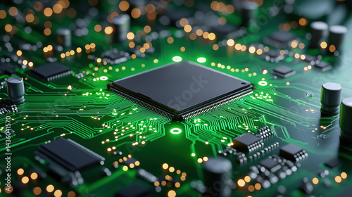 Obraz premium Microchip on a circuit board illuminated with lights