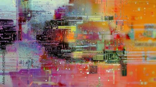 © Dueo, Naklejka premium Microchip with AI Data Streams