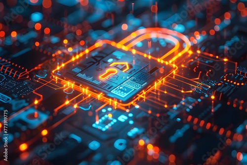© Ivan, Fototapeta premium Microchips with a padlock demonstrating network security. Concept: information, exclusive