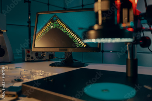 Obraz premium microelectronic laboratory quality control with a microscope