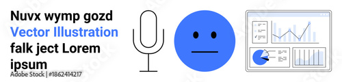 Fototapeta premium Microphone, neutral emoticon, and analytics dashboard with charts and graphs....